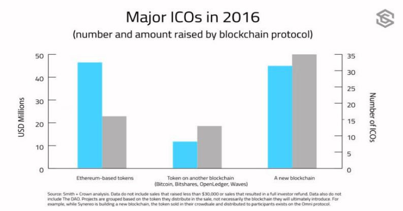2016 年是标志性的一年,1CO 的地位得到了巩固,成为了推出新协议和去中心化应用的必经之路。许多大型项目推出了他们的 1CO,一些重要的协议发展良好,大量投资资金到位,使得加密货币行业的总市值不断增加。