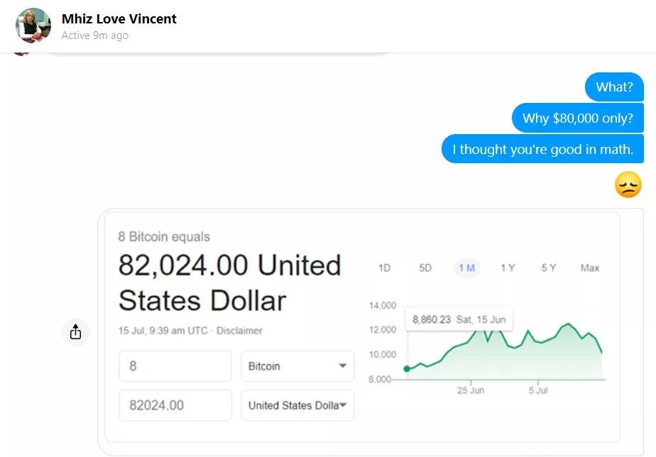 “你搞啥子?我用82000美元买了8个比特币,全部投进去却只能获得80000美元,我竟然陪了?不是说好收益翻10倍吗?(你数学老师到底是谁?)”