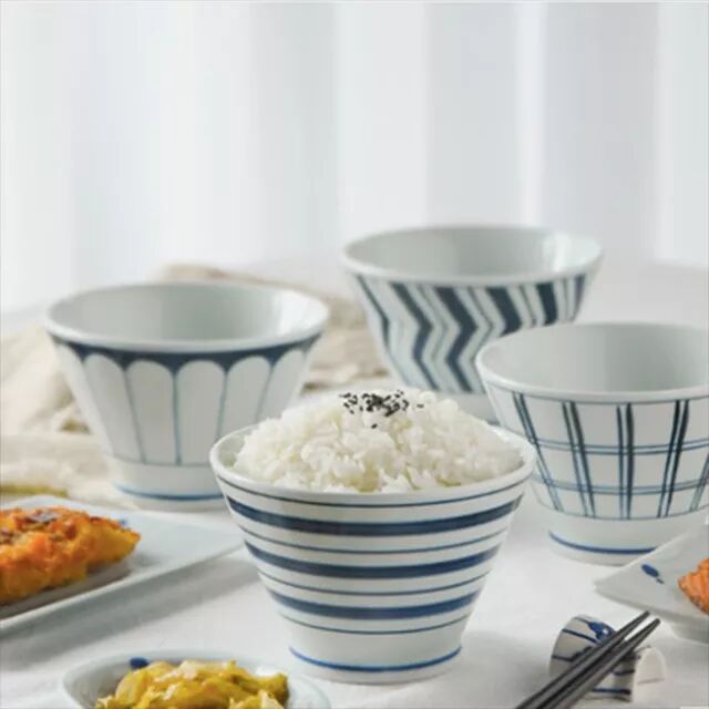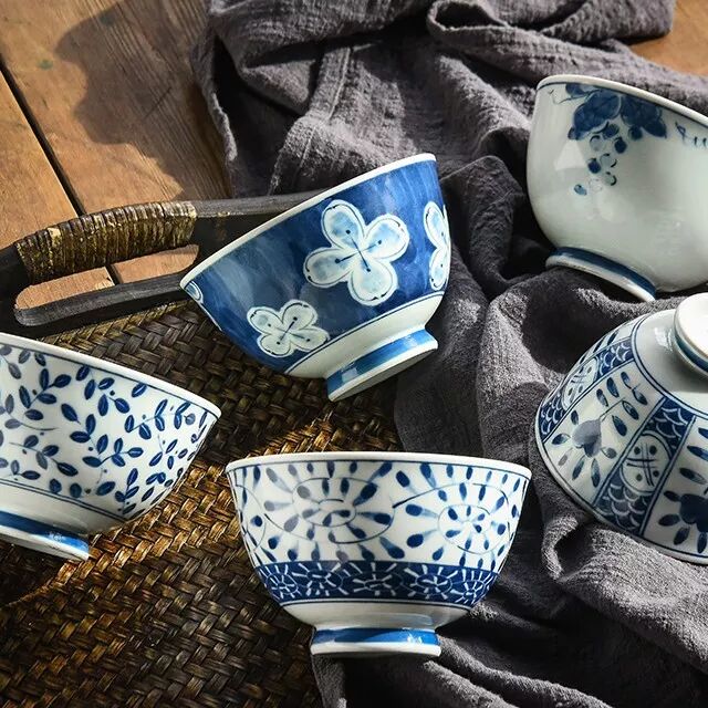 选用了碎花唐草、梅花石榴、网纹山水、羊齿蕨和千筋纹五种日式传统花色,为餐桌增添了浓浓的和风气息。此款碗壁坚厚,瓷质温润,经久耐用。