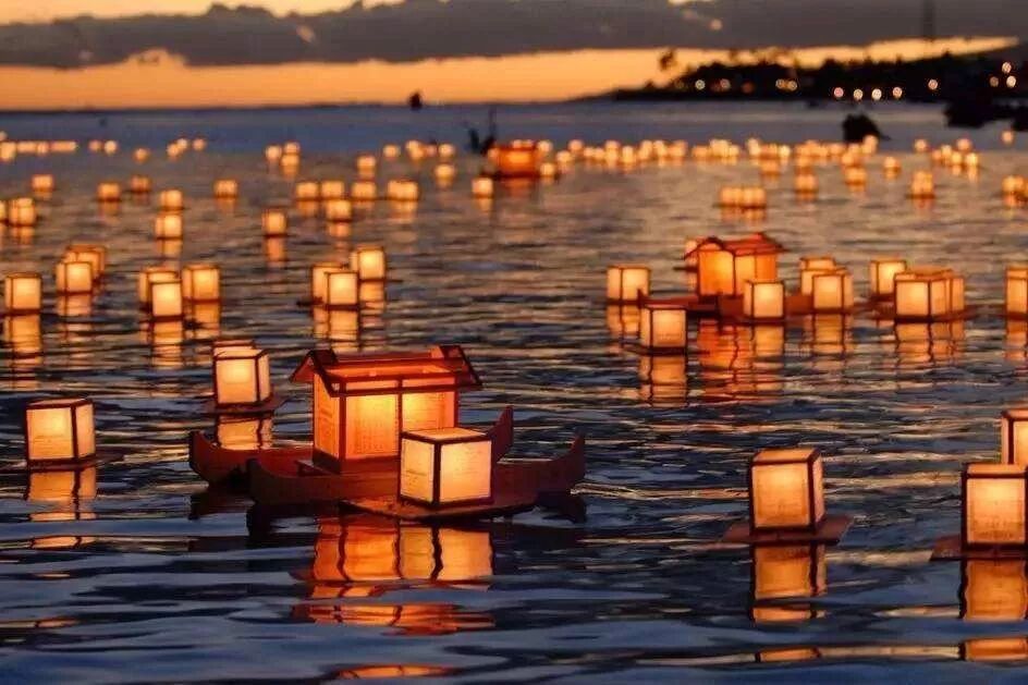 放河灯其实是中元节的习俗之一,只不过中元节和处暑相隔太近,久而久之也变成了处暑期间的一个风俗。河灯也叫“荷花灯”,一般是在底座上放灯盏或蜡烛,在中元夜当晚放在河海之中,任其漂流。关于放河灯最早的说法是为了普渡亡灵。另一种说法是,病愈者制作河灯投放,送走疾病灾祸,期望更好的生活。