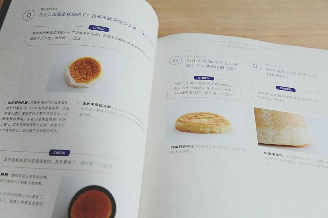 而且特别好的一点是把蛋糕每种可能产生的问题都用对比图片的形式展示出来,非常直观,可以让读者从结果来倒推原因,相信看过的小伙伴都会有所收获。