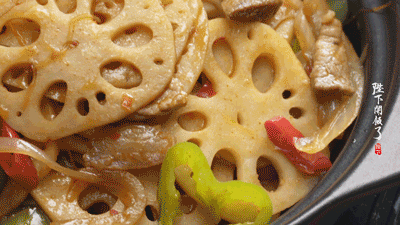 4. 将莲藕和肉片倒入锅中回锅,倒入生抽调味即可出锅。