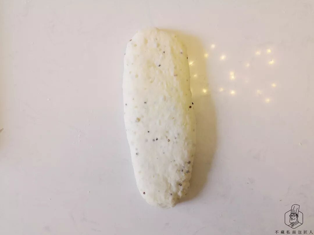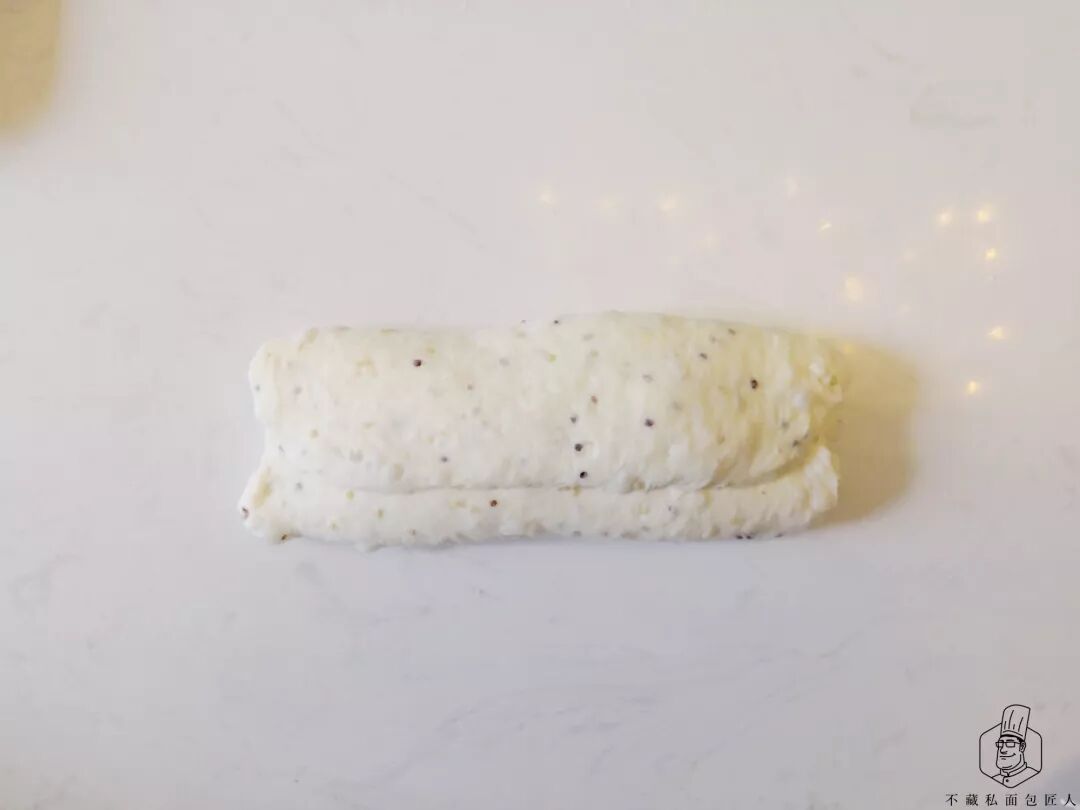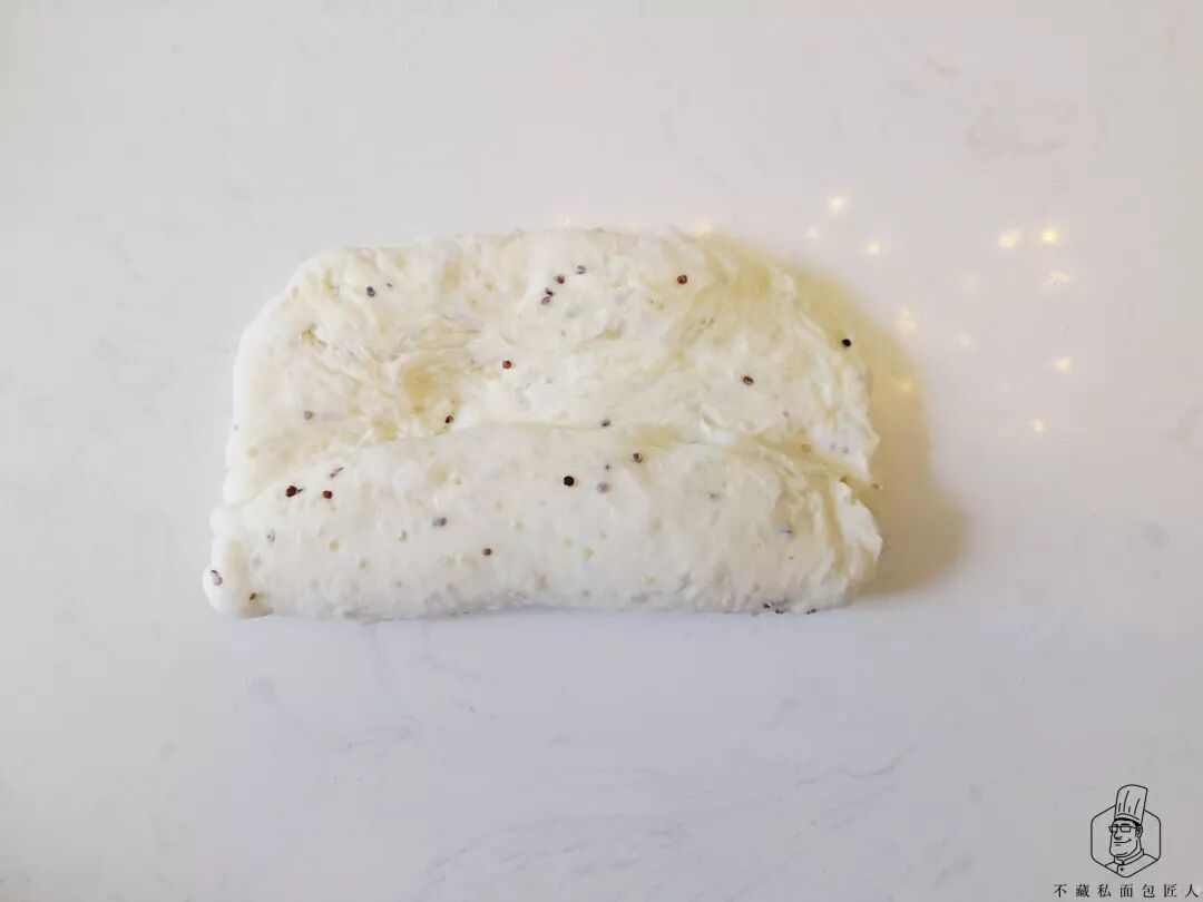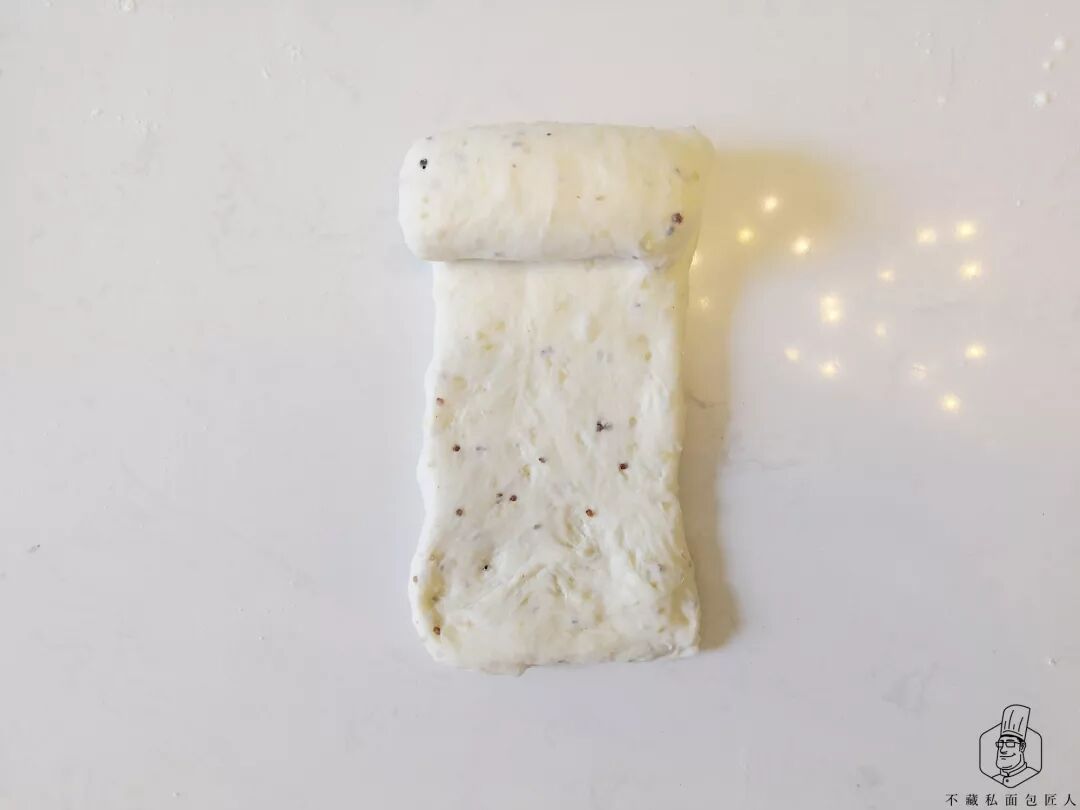 两头从1/3向中间折叠成长条状,放在烤盘上松弛。