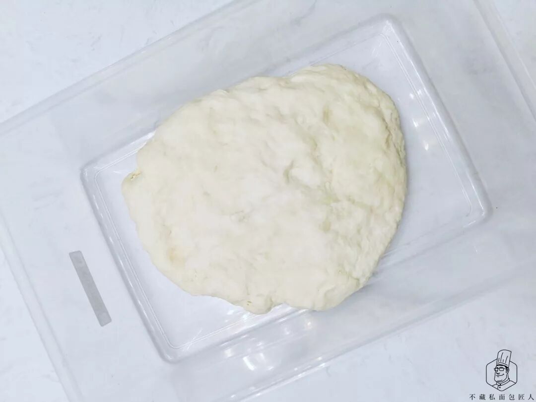 4、基础发酵:起缸后把面团滚圆,放保鲜盒内28℃发酵45分钟左右。