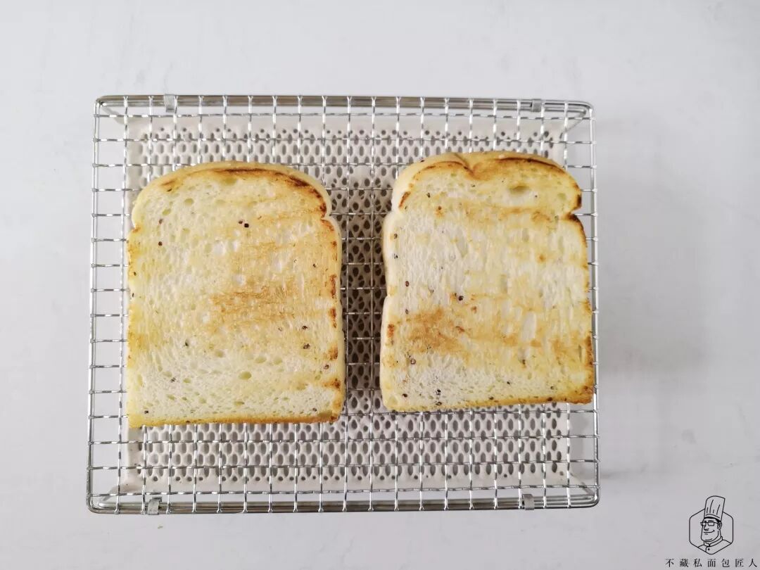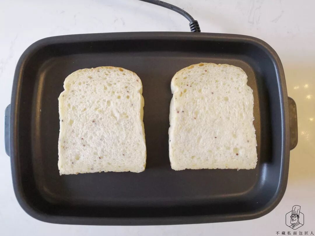 吐司两面在平底锅烤脆,具体根据个人口感调整。