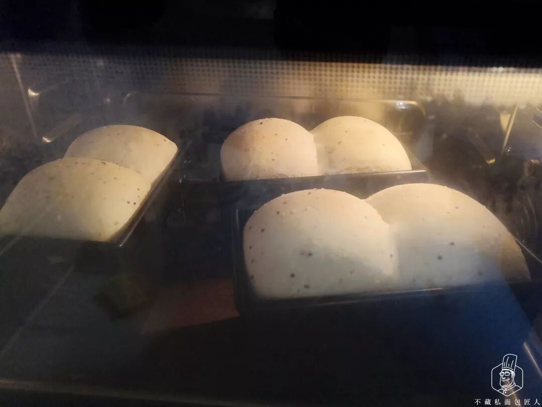 7、最后发酵:温度35℃湿度80%,醒发1个半小时左右,面团发到9分满。具体时间和温度根据个人环境情况调整。