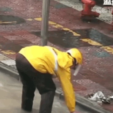 并沿路停下徒手清理垃圾