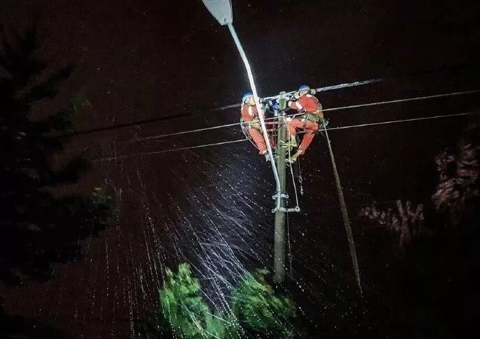 他们冒着风雨抢修电路