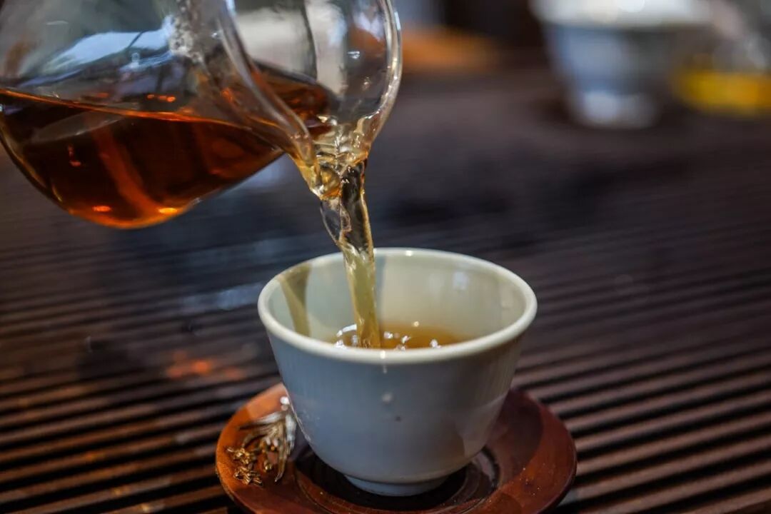 第一泡,加入热水后,即刻倒掉,是为洗茶。第二泡,停留10秒左右,再倒。