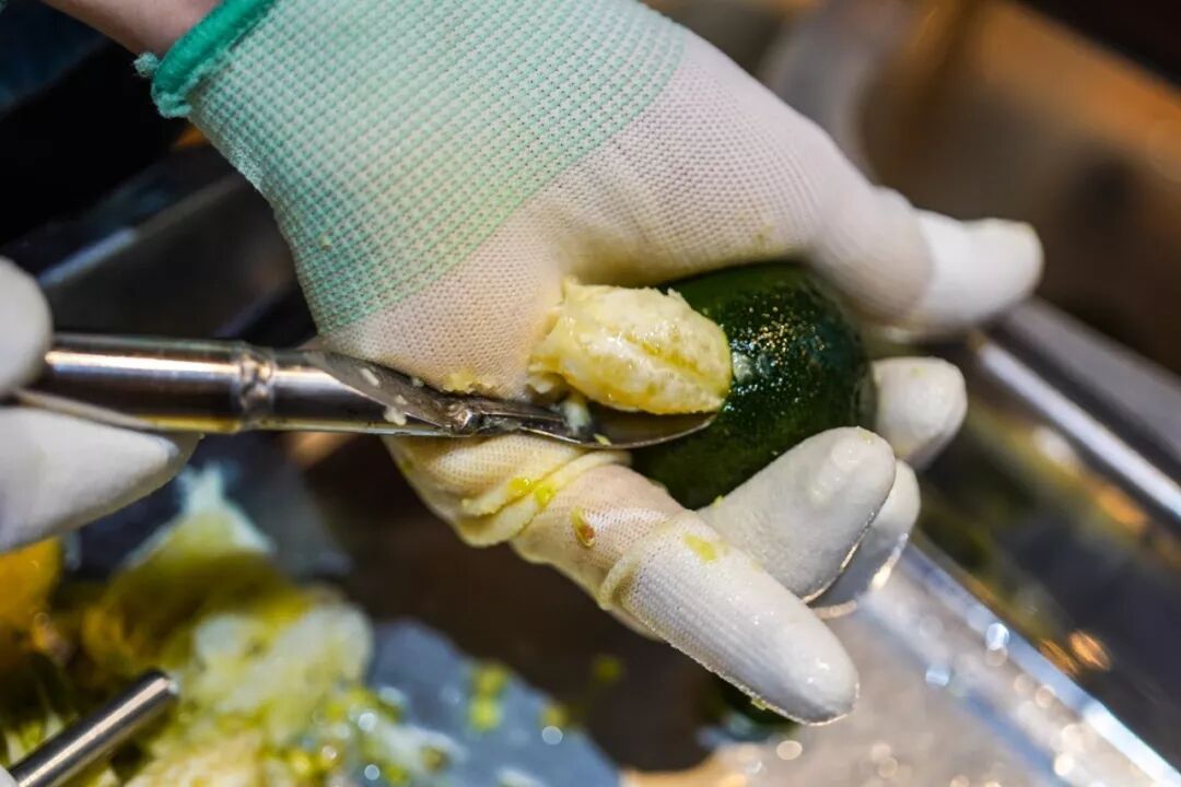 小青柑摘下后,开口,然后挖去果肉,对,新会柑的果肉是用来扔的。