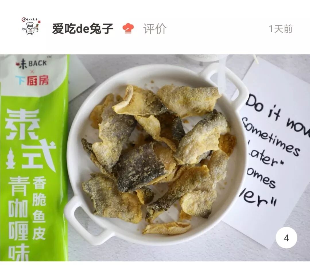 @公仔思乐冰:脆咔咔的鱼皮是泰式青咖喱味的,少少辣少少酸不会太腻,追剧下午茶的好推介,开了一包不到三秒全秒光了,是又要入货的节奏了。
