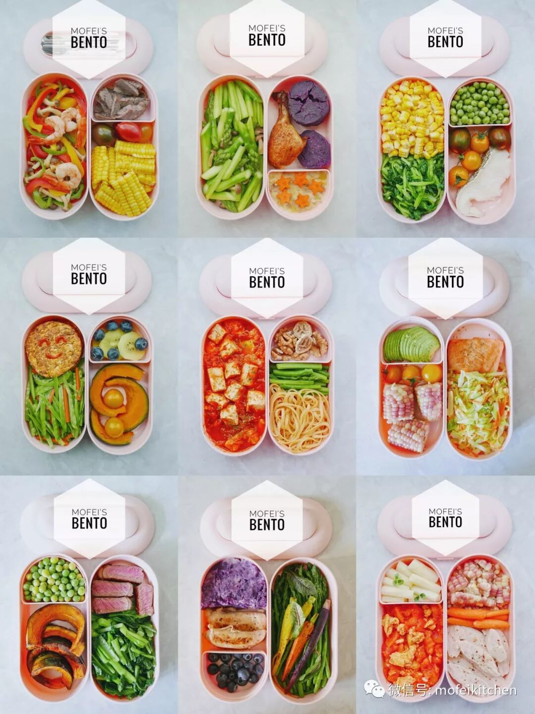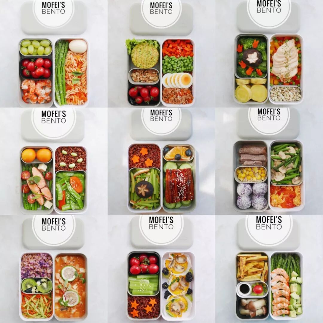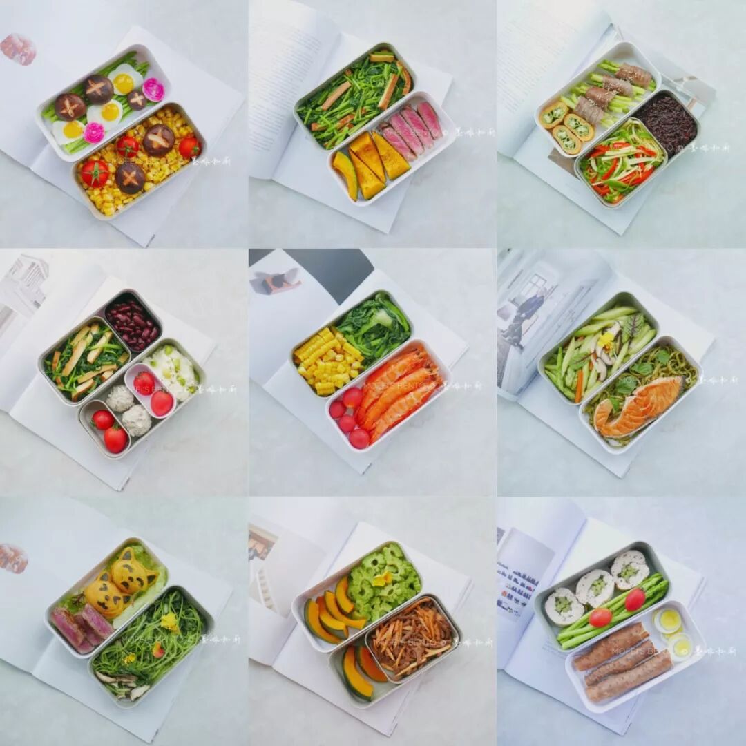 我目前对于吃什么不会称重,不会让自己有一种额外的心理负担去考虑自己摄入的具体热量。但是还是会按照蛋白质+蔬菜水果+碳水化合物去分配。以下分量均为大约:蛋白质100-120克,蔬菜200克以上,碳水化合物(根据不同的食材重量不同,比如红薯玉米南瓜等根茎类蔬菜200克,米饭熟重100克,意面50克,燕麦40克等),还有脂肪别忘了!一般我选用橄榄油或者椰子油,有时候还会搭配一些坚果。除此之外,我喜欢在便当中放入一小份水果,不论从色彩还是口味上,在便当自带的小格中放入水果都是超棒的搭配。