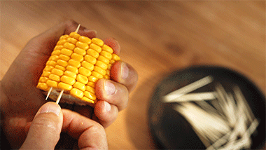 除了里脊、鸡翅、火腿什么的,我这次还试了串玉米。以前我一直纳闷,为什么有人能把玉米一粒粒串得那么整齐,直到我得知了它的真实串法,硬核又爽快,看我下面的教程吧~
