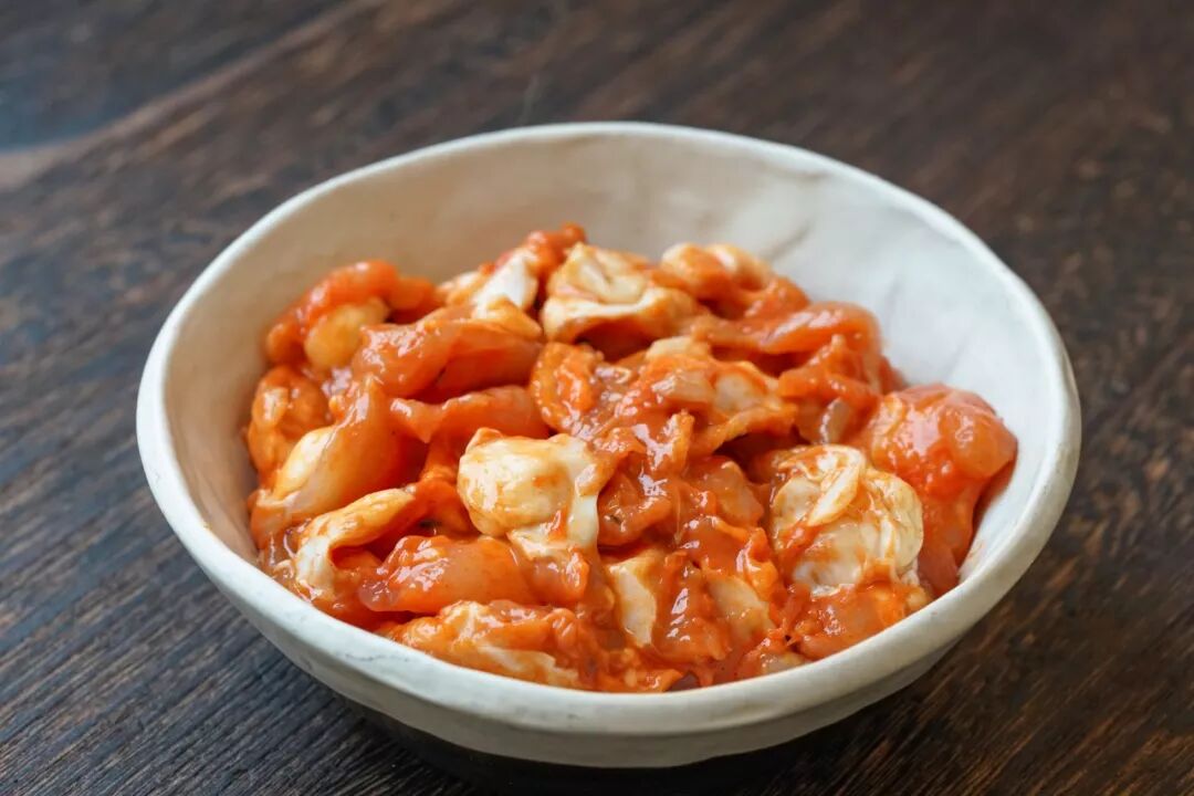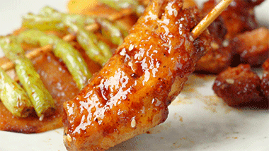5、300g掌中宝加入30g奥尔良烤翅腌料腌制30分钟,串起。
