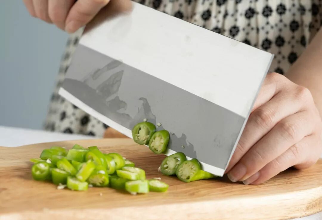 优点很多,比如符合中国人直上直下的用刀习惯,可以拍蒜拍黄瓜,刀背还能拿来转移食材等等。
