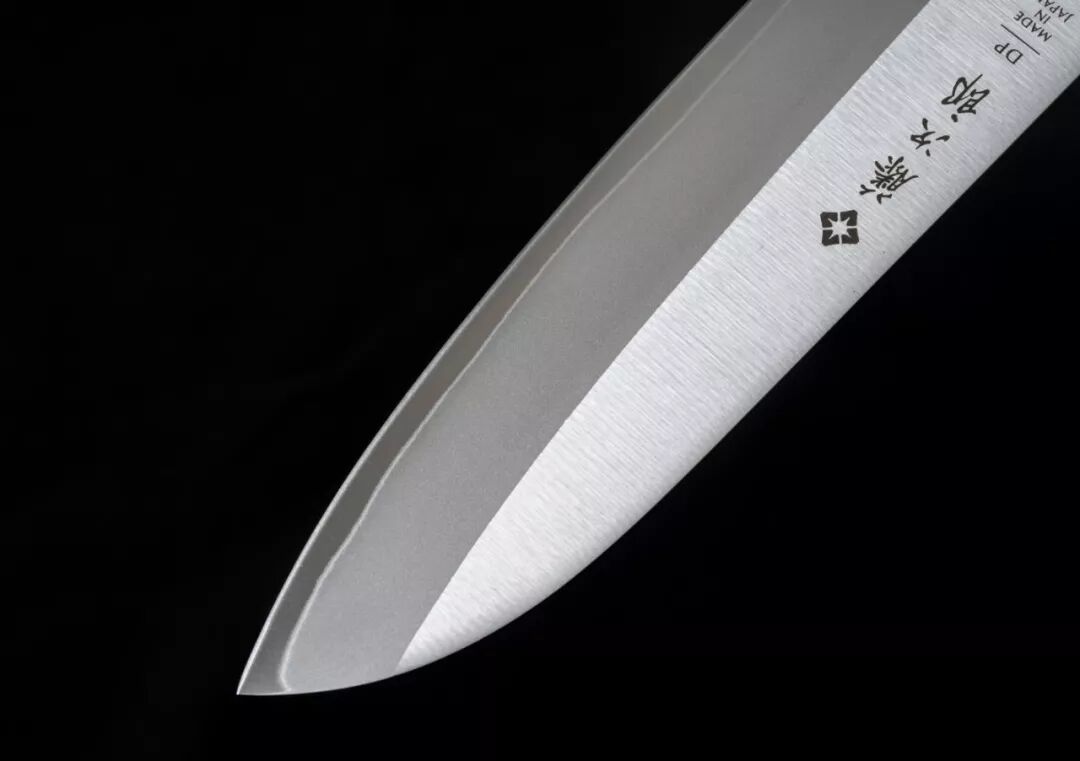 藤次郎的这把刀,刀刃材料是大名鼎鼎的VG10:这是一种含铬的碳钢合金,HRC在60-62之间,不光锋利,而且非常耐久。