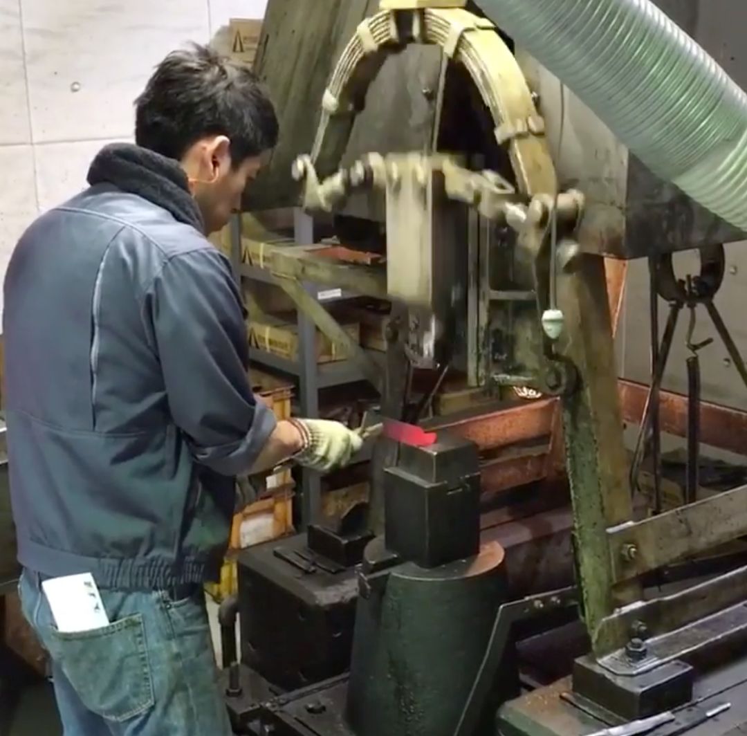 如果想给刀刃用上更高级的材料,就必须使用另外一种制刀的方式:锻造。也就是大家在电视上看过的那种,对着一块烧红的铁不断捶打的制作工艺。