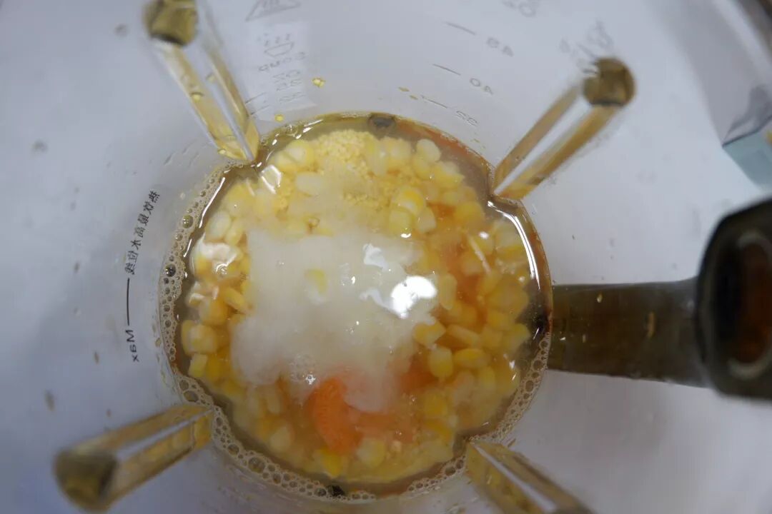 3. 加入玉米粒、小米,清水
