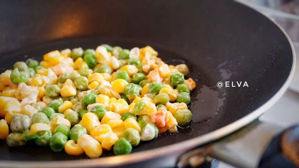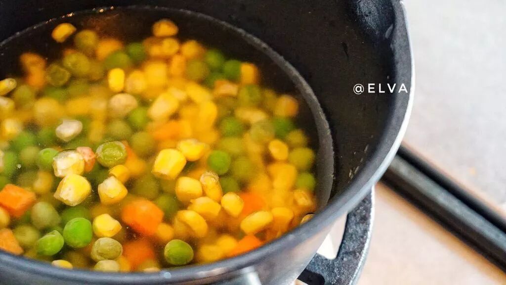 1. 买的是那种混合型的田园菜(粟米粒+胡萝卜粒+青豆粒),所以自己先水里煮一下就可以了。