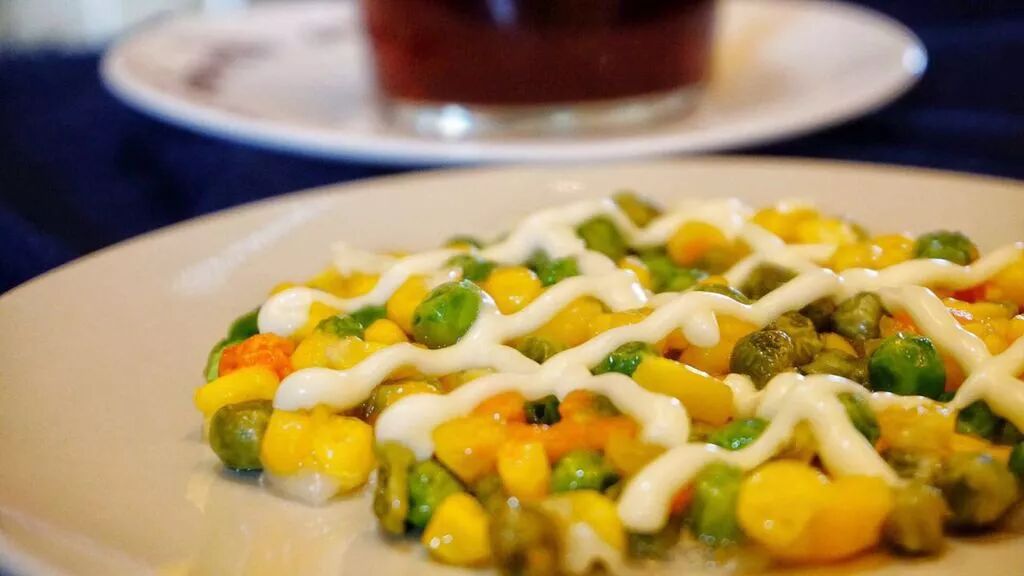 6. 出锅,淋上色拉酱,就可以开动啊。玉米的清甜香和酸甜奶味的色拉酱,CP值爆表啊
