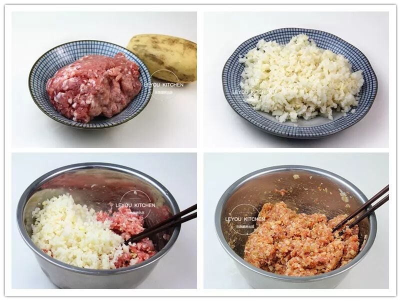 第三步:把莲藕、肉馅、姜末放盆中,然后再依次放入1个蛋清、半勺老抽、2勺生抽、1勺蚝油、半勺盐、半勺鸡精、少许水淀粉、少许香油。