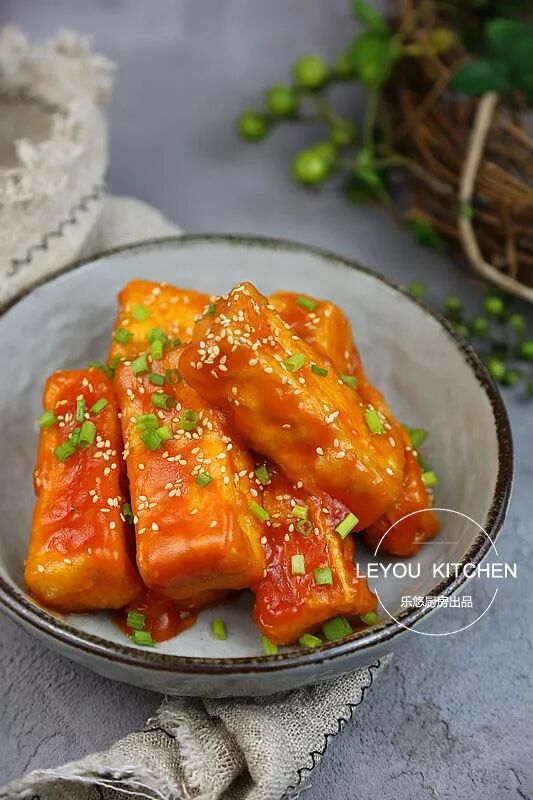 2、最后豆腐入锅中炒的时候,一定不要炒太长时间,快速让豆腐表面裹上糖醋汁就可以了,炒太久,容易让豆腐表面吸收水分,变得不再酥脆。