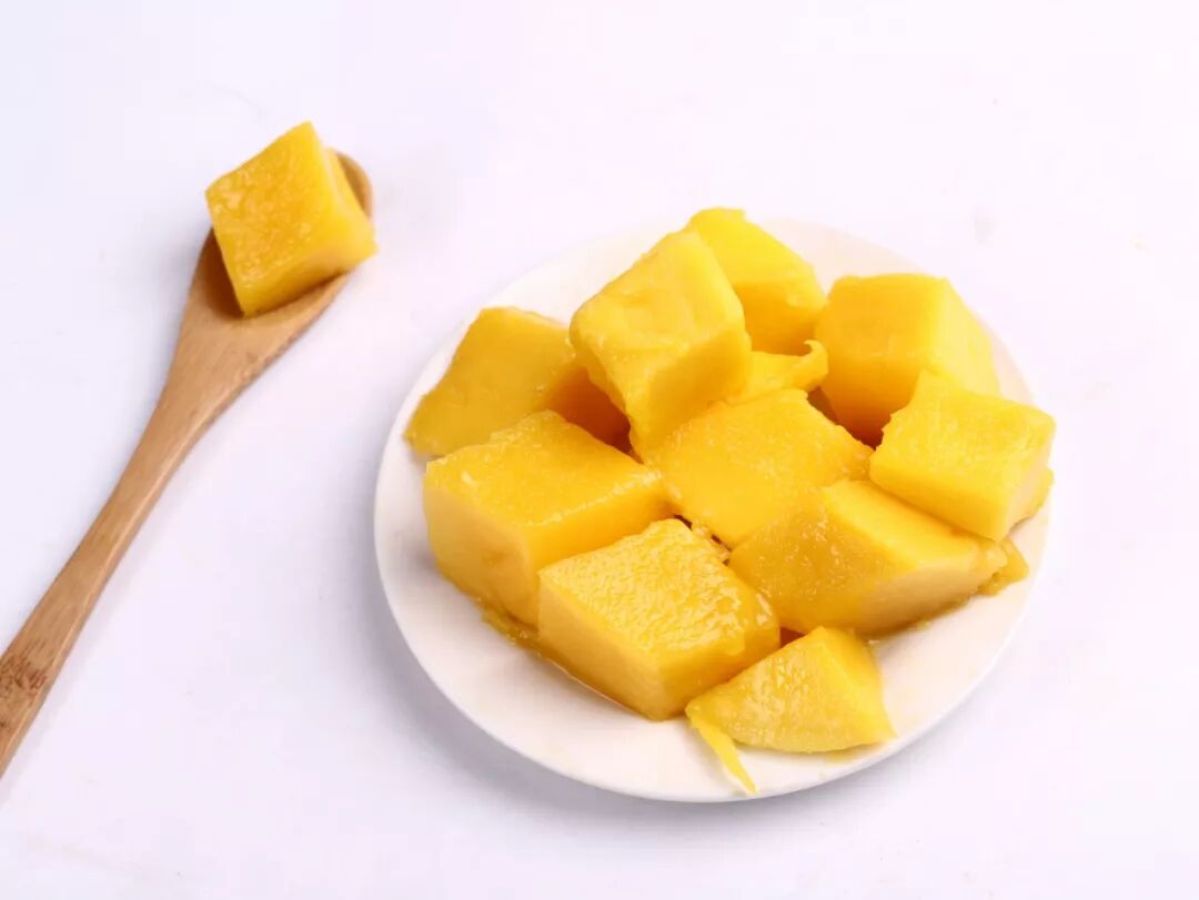盛夏时节,总是想吃浓郁缤纷的热带水果。熟得刚刚好的大芒果,十字刀切开,一块块黄澄澄的芒果果肉,果香四溢,汁水充盈。尝上一口,缤纷的芒果味儿便绽放在口腔中,清甜水润,一抿即滑。厚实的果肉,纤维质少,口感细腻,让人能一次吃个过瘾。