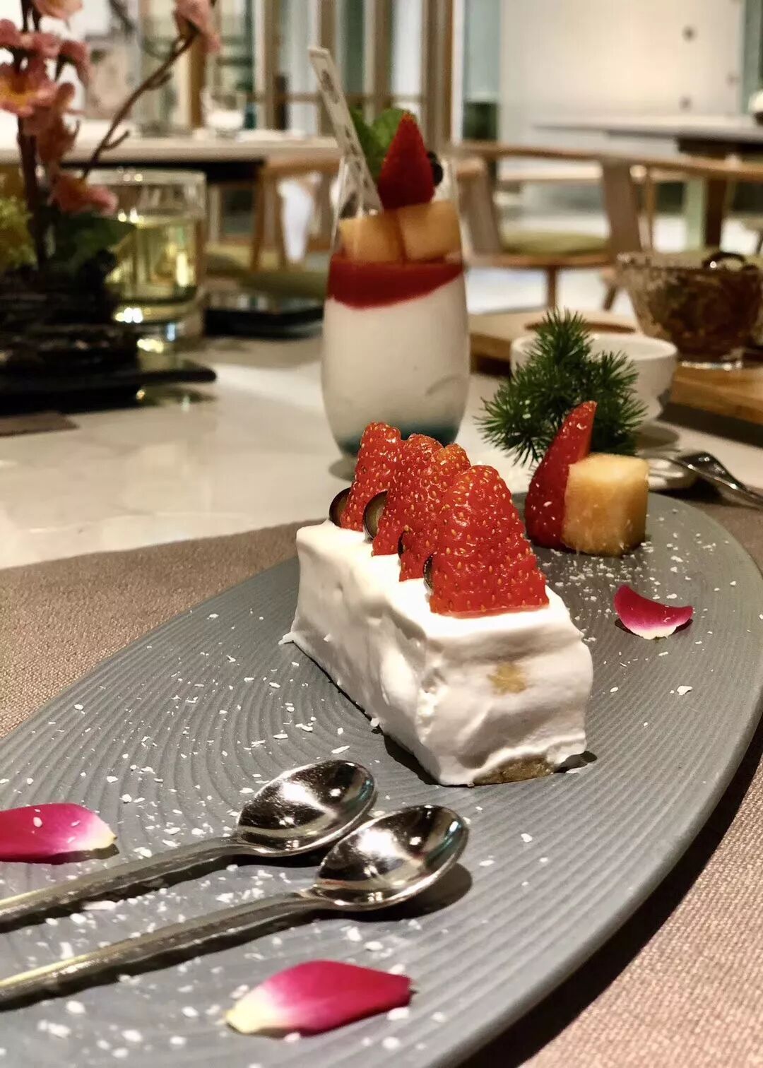 椰奶打泡做奶油,包裹着是无蛋无奶松软弹口的蛋卷,奶油有些酸甜不腻喉,红嘟嘟的草莓做点缀,瞬间被爱上了,哪有什么不快乐,一块素点心下肚就能被治愈。