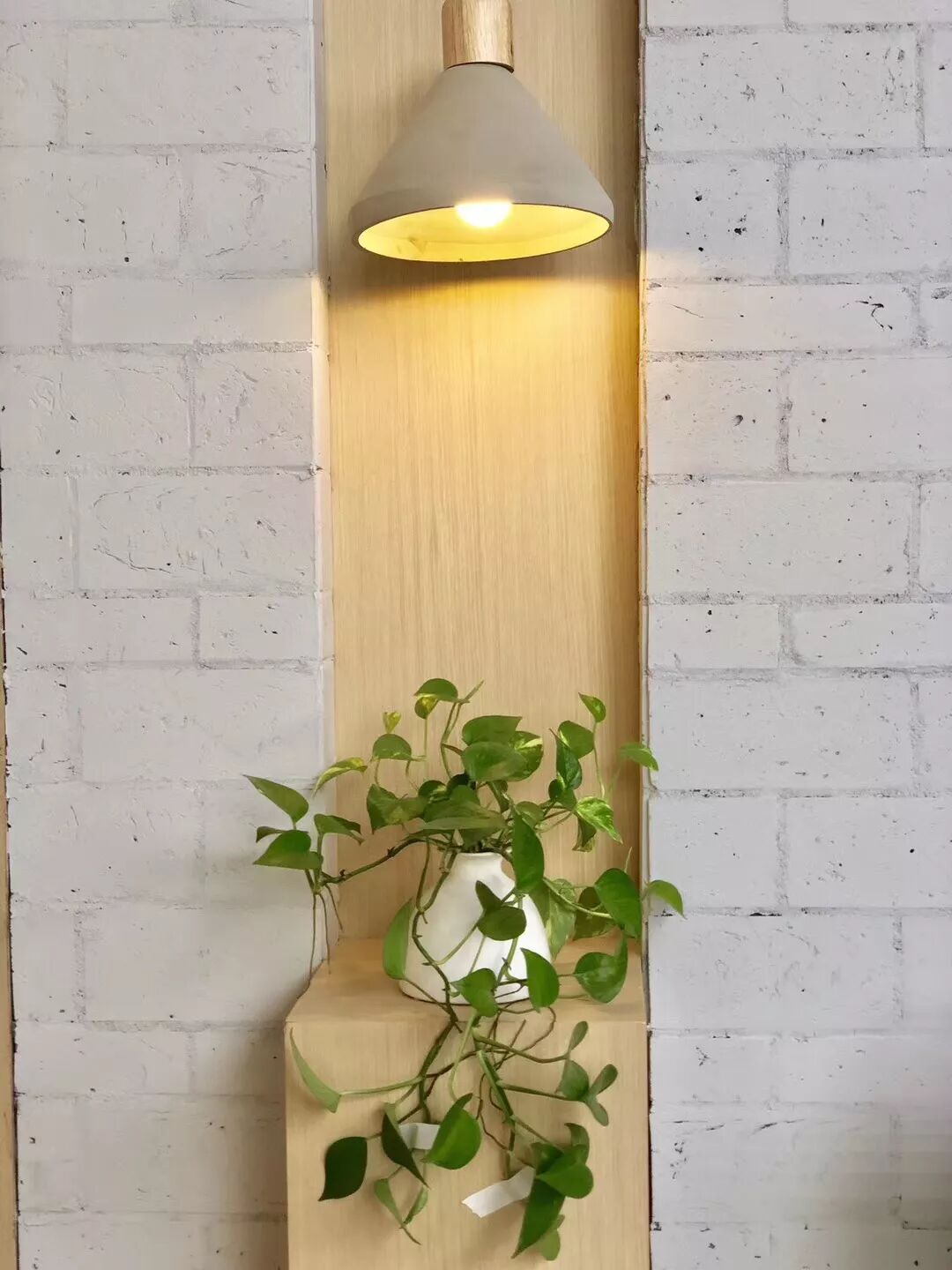 进入眼帘就看到一个明亮而精致的空间:绿植、木桌椅、蔬果文字的宣传语,设计师将一份古朴与清静浸润在空间之中,让目之所及的一切愈加耐人寻味。