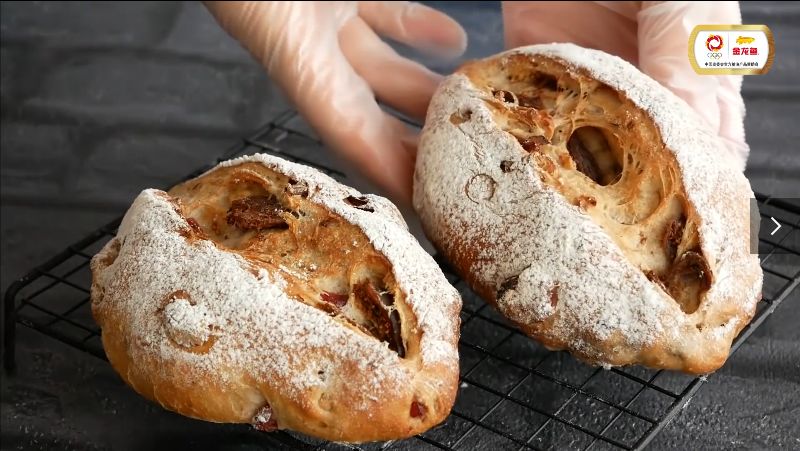 整形好的面团进入烤箱后,随着温度的增加,在蛋白支撑下,面团急速膨胀,经得住高温炙烤不塌陷,最终形成挺立饱满的面包。温度继续升高达到160度,面包表皮呈现金黄色,浓郁自然的麦香开始弥漫,按一下慢慢舒展,轻轻撕开,细腻可见的拉丝,传递着每一口美味,绵软有弹性。