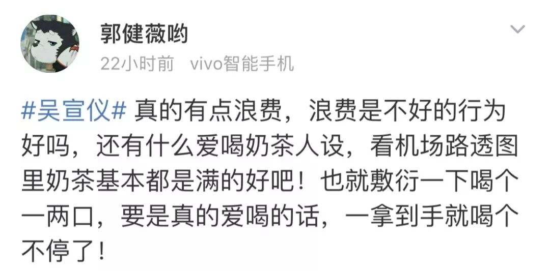 最近有人扒出了吴宣仪在机场喝奶茶只喝了两口,