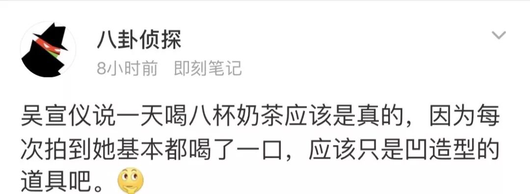 - 一天喝8杯奶茶?!吴宣仪被怼上热搜!网友:现在明星采访吹牛都不用打草稿了?