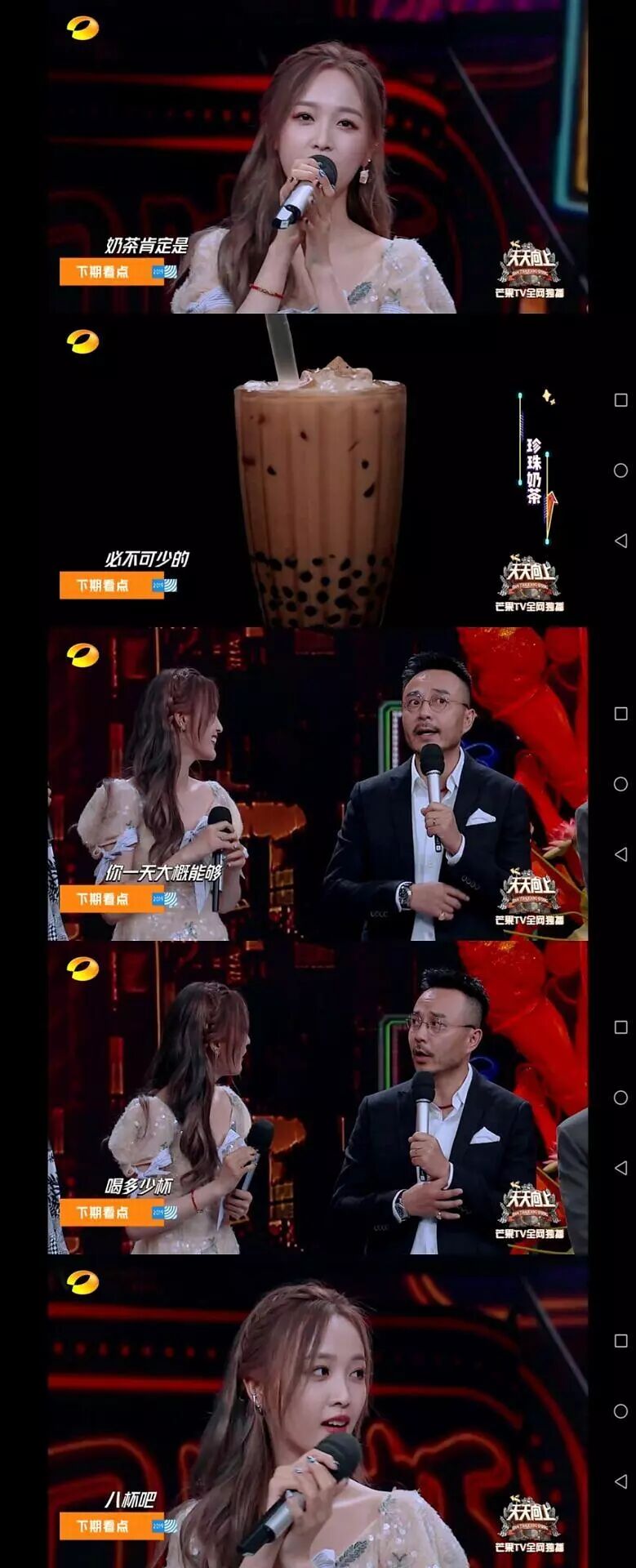 吴宣仪对汪涵说,她一天要喝八杯奶茶。