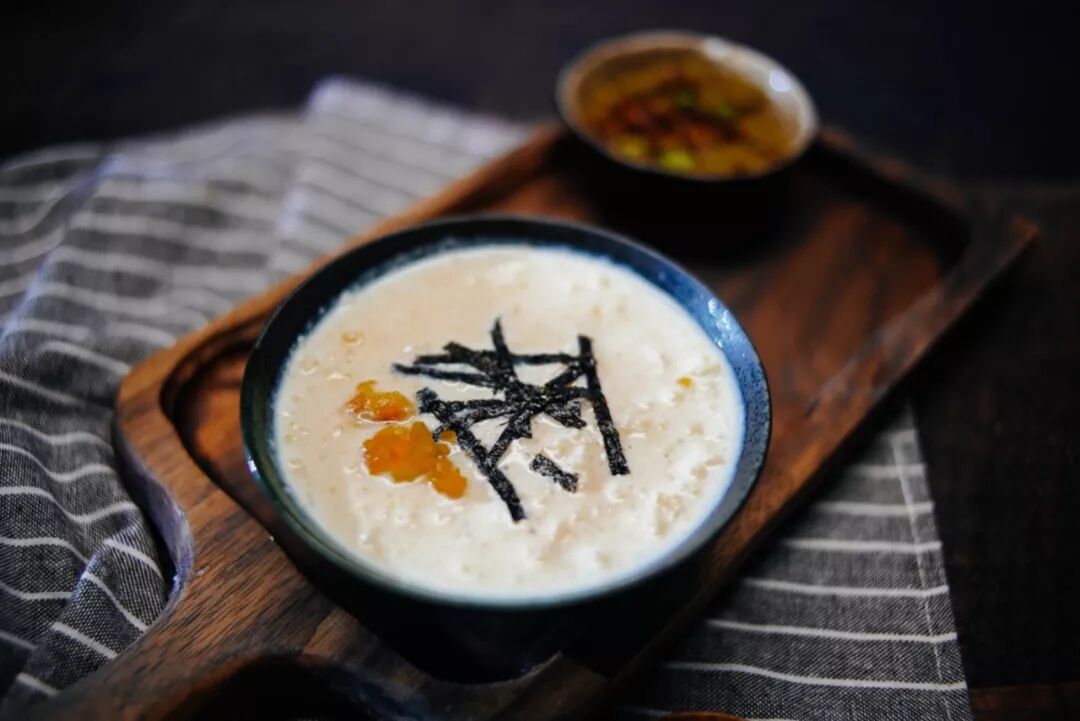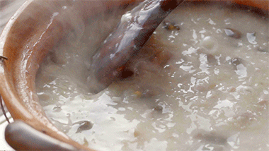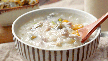 它并不难,哪怕作为早餐也不会花费很多的时间。温柔的米粥混合了剔透的皮蛋和爽口的瘦肉,温煮中“咕嘟——咕嘟”冒着小泡,还没入口就已安心。我喜欢加个咸鸭蛋,咸蛋黄的红油配粥,是天下最美的搭配。