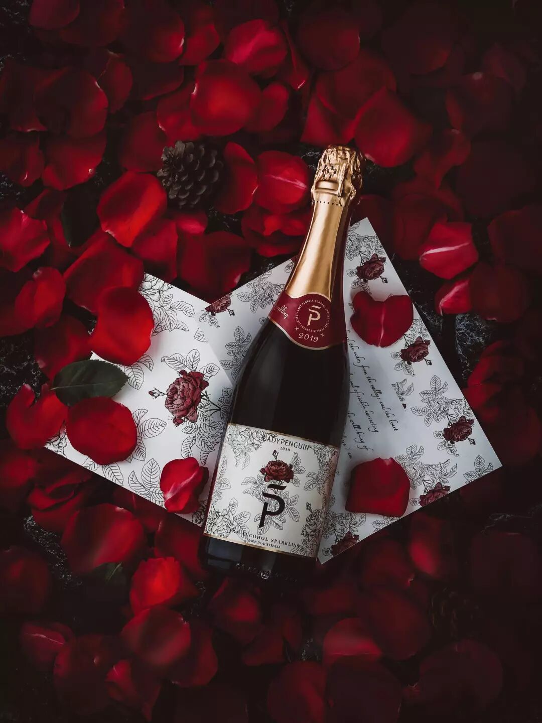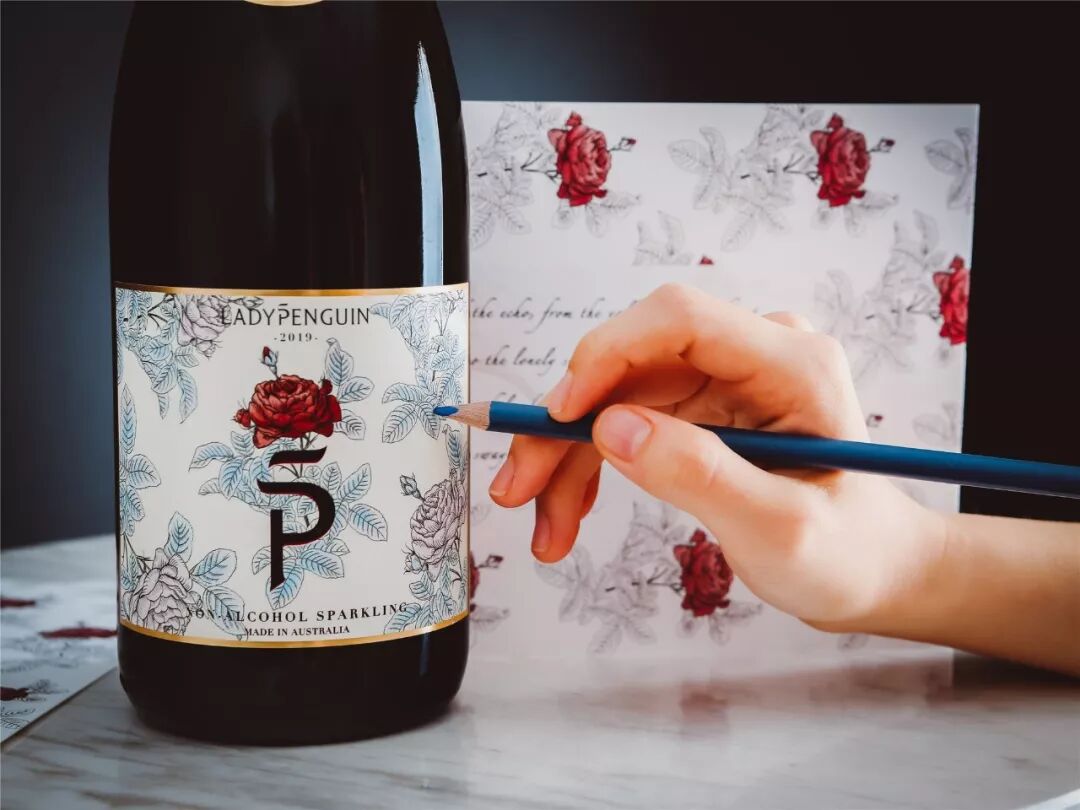 于是灵感如尿崩的设计团队连夜在空白的画板上,用醉普通的中性笔画出了一个玫瑰园。但思索再三,决定只给最中间的那朵玫瑰上了色,其余的都留空白。而这就是这款酒的酒标,瓶身则是大气的香槟瓶。
