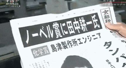 就这样,没有一点点防备,田中耕一的名字就上了头条。