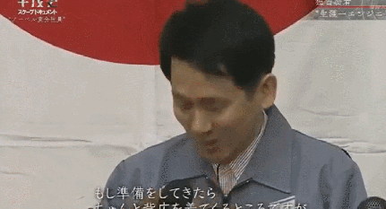 跟妻子解释完后,局促不安的田中,不停地面对镜头鞠躬。