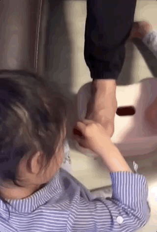而就在她的头顶,一个男人也在忙碌着。懂得分担,懂得宠爱妻子的男人总是那么可爱。