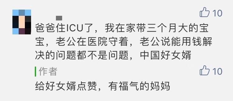 一位粉丝朋友曾对我说,爸爸生病住进ICU的时候自己都吓晕了,幸亏有老公在身边。