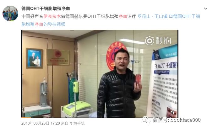 《中国好声音》第三季杨坤战队学员伊克拉木,在去年8月也做了一个名叫「三氧HOT干细胞疗法」的项目。