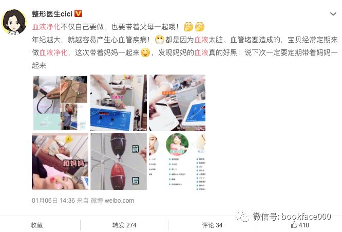 - 想重回七年前的自己吗?? 想延年益寿吗? 来做血液净化吧。 在古代,为了长命百岁,帝王和术士们沉迷修仙炼丹;现如今,为了变漂亮,从化妆到整容,再到「净化血液」,招数层出不穷。 近日,某女网红在日本旅游