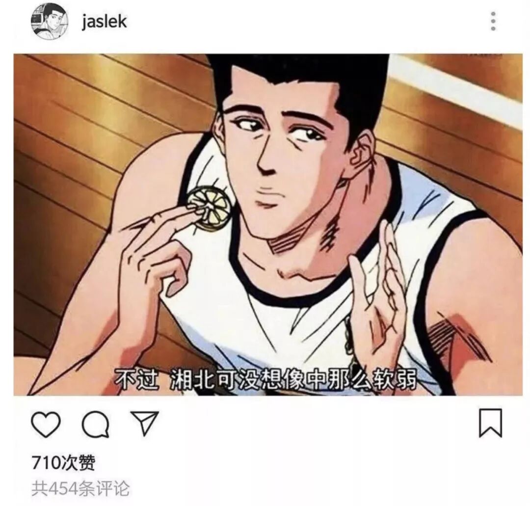 他在自己的ins表明了自己的态度:不过,湘北可没想象中那么脆弱。