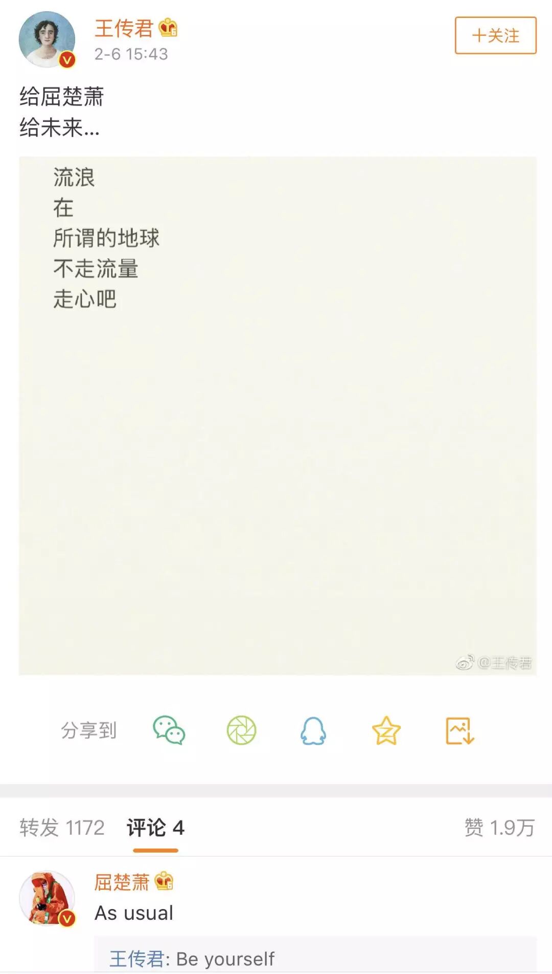 屈楚萧用小号转发并说:老凤爪子?老鸡爪子(最后还不忘加狗头保命