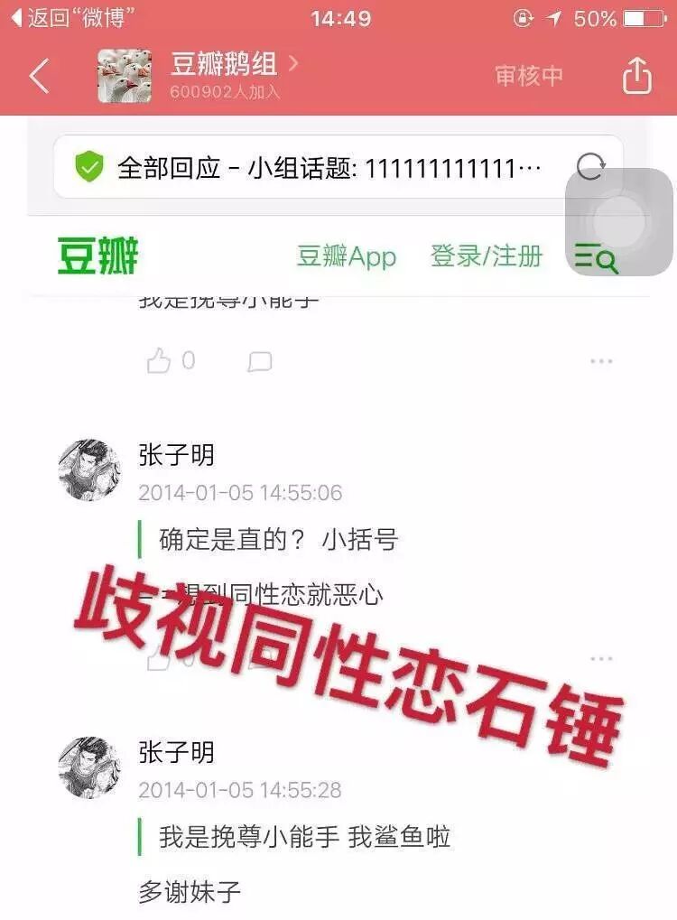 他曾在豆瓣发言:确定是直的?想到同性恋就恶心。