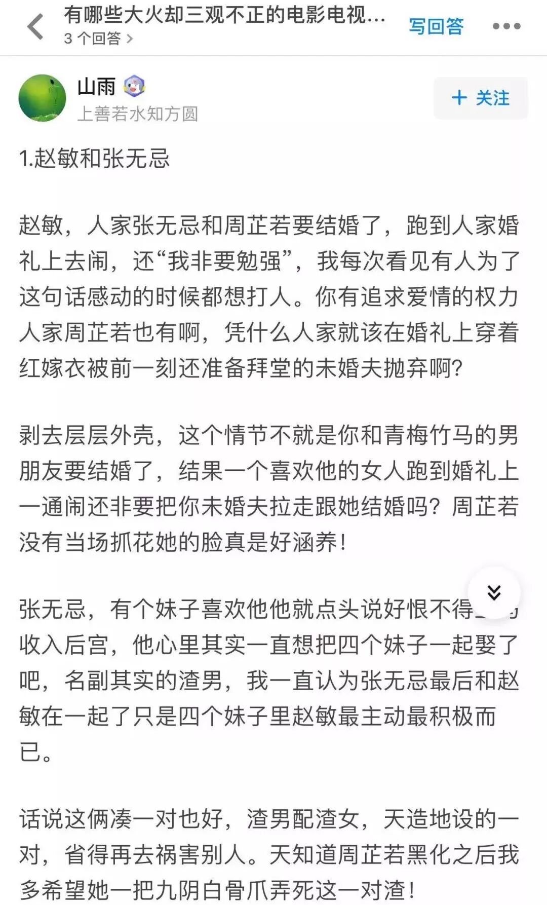 你看,不知不觉,三观党的触角,已经从普通人,跨过明星,最后伸向了文艺作品。