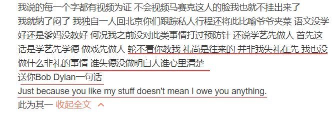 他曾公开在微博上手撕私生饭,谴责他们跟踪,无脑搭讪,打电话。
