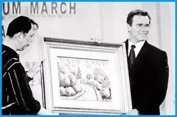 这幅画的作者是金捷,而拍走画的人是国际巨星施瓦辛格。