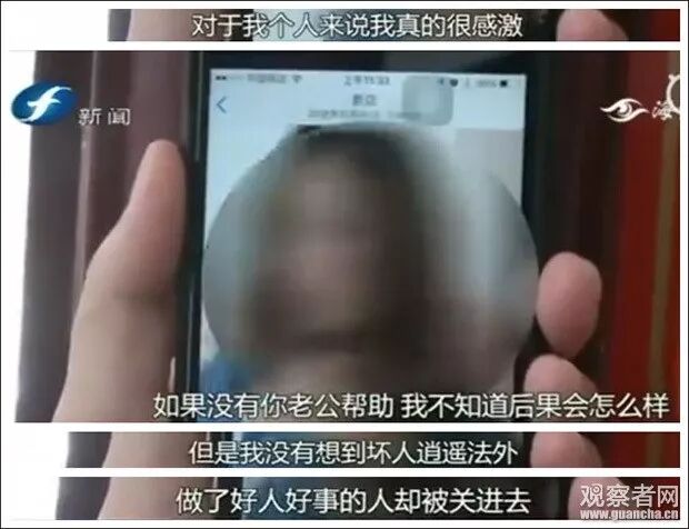 采访视频里,一位女子对她说:“那时见到你的手拎着袋子,把小孩抱起来,当时看得眼泪都流出来了。”