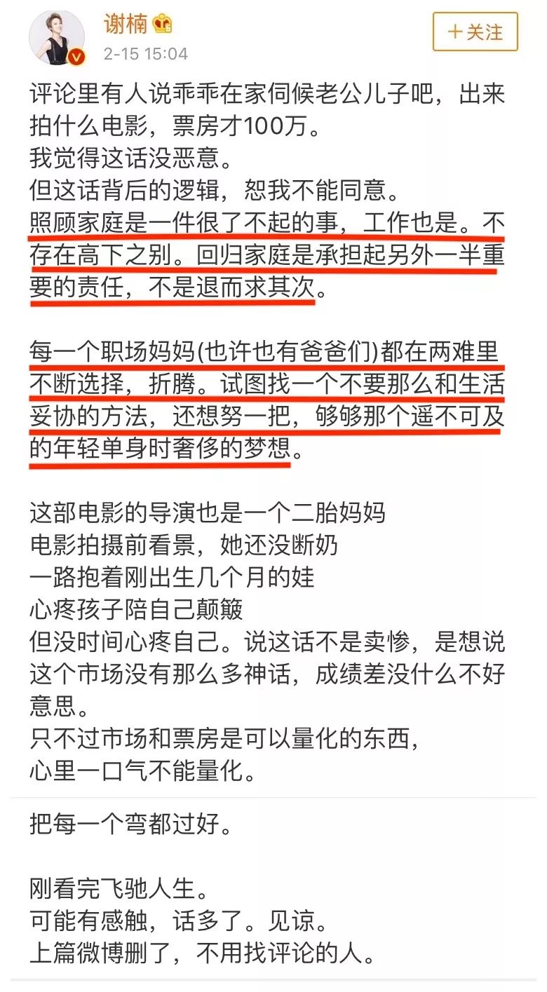 对此,谢楠发了一条长微博回应: