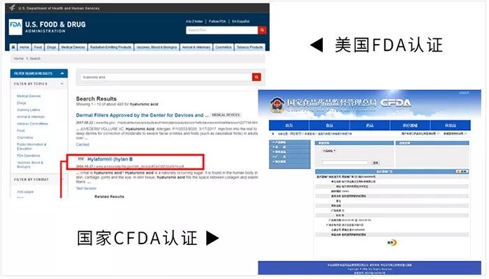 在国内,医用纯玻尿酸的功效已被CFDA盖章认证;在美国,早在2003年,玻尿酸的这些作用已被明确写入美国药监局的批文中。全球范围内,爱美的女人都为之疯狂,难怪大S说:“没有玻尿酸,女明星将活不下去!”